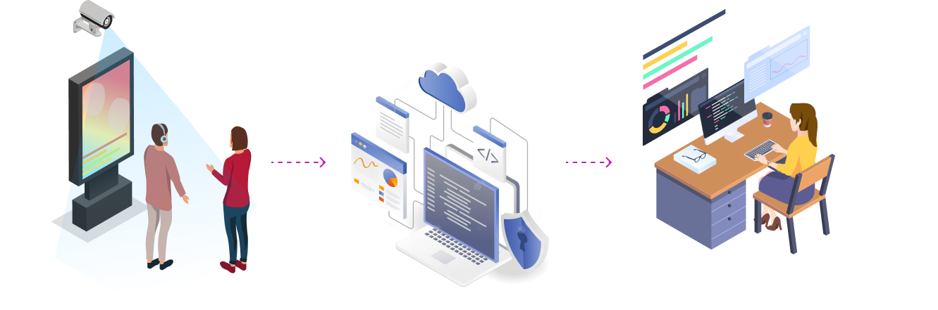 Az adatgyűjtést egy speciális, beágyazott rendszer végzi a kihelyezett kamera inputból. A kamera ugyan felvételt nem készít, de az adatgyűjtő eszköz pontosan rögzíti és továbbítja a városi reklámok környezetében elhaladó gyalogosok számát és visekledésüket. Az eszköz megbízható és hatékony működése biztosítja a pontos információkat a hirdetés konverzióarányáról.